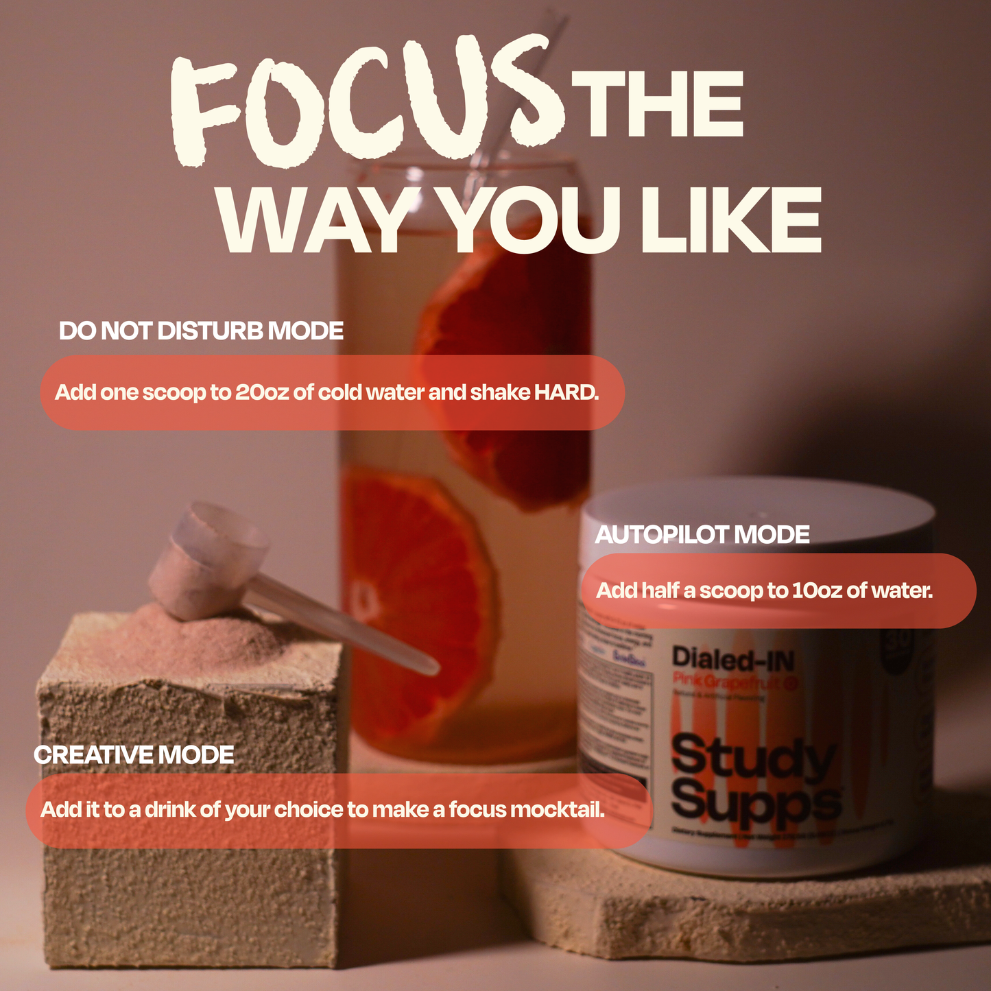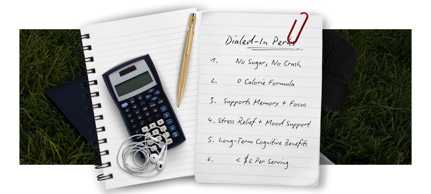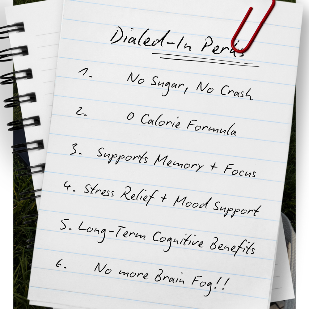 Dialed-IN™ gives you a clean, crash-free energy boost so you can stay sharp when it matters most. Perfect for late cram sessions, long meetings, or getting through a midday slump.