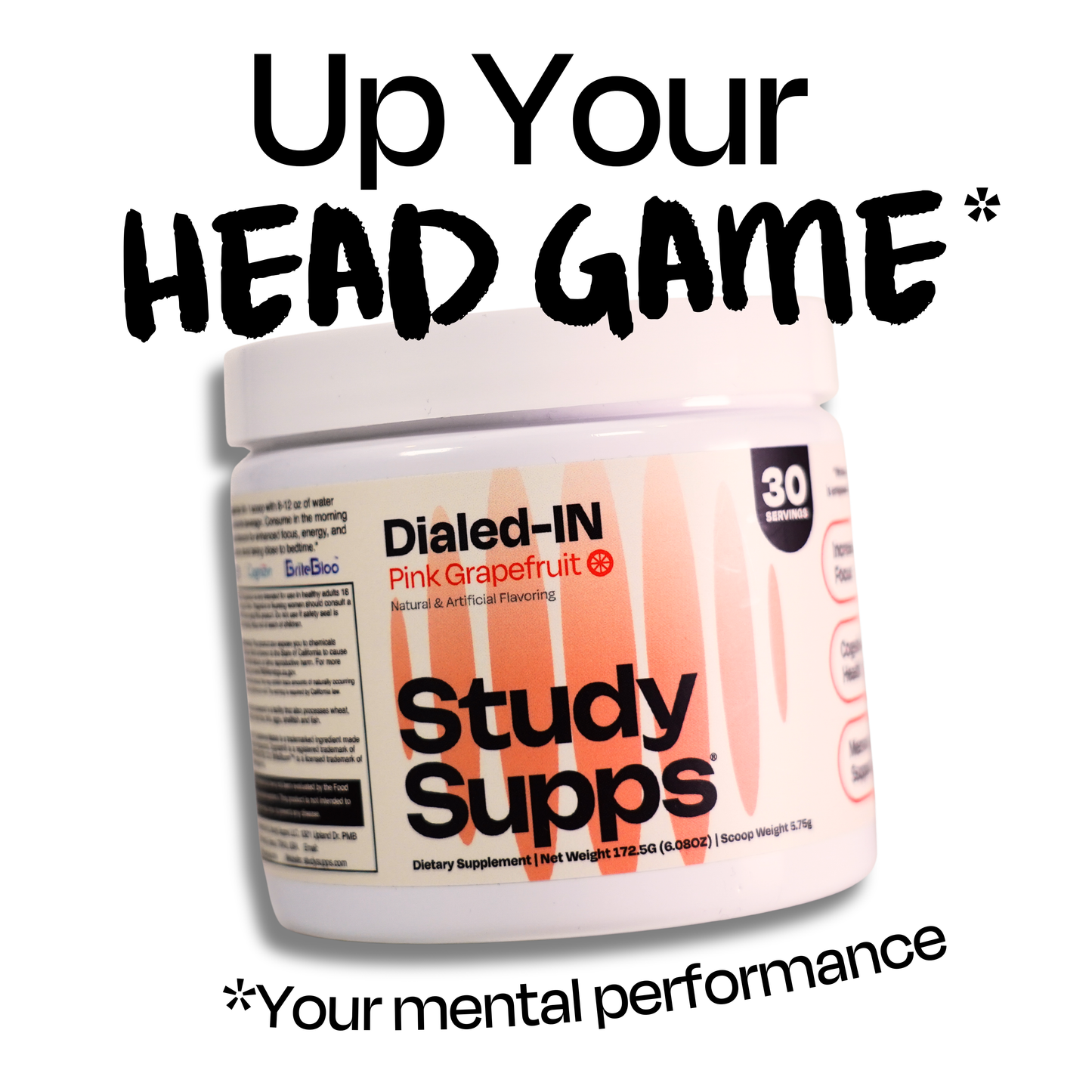 Dialed-IN is a clean, powerful nootropic built for students who treat their attention like an asset. Be prepared to get work done so you can focus on what actually matters. With clinically-backed ingredients like Cognizin® Citicoline, Lion’s Mane, Alpha GPC, BriteBloo™ (Blueberry Extract) and slow-release caffeine, it delivers smooth, crash-free focus that lasts. Fuel your brain, cut the noise, and stay Dialed-IN when it matters most.