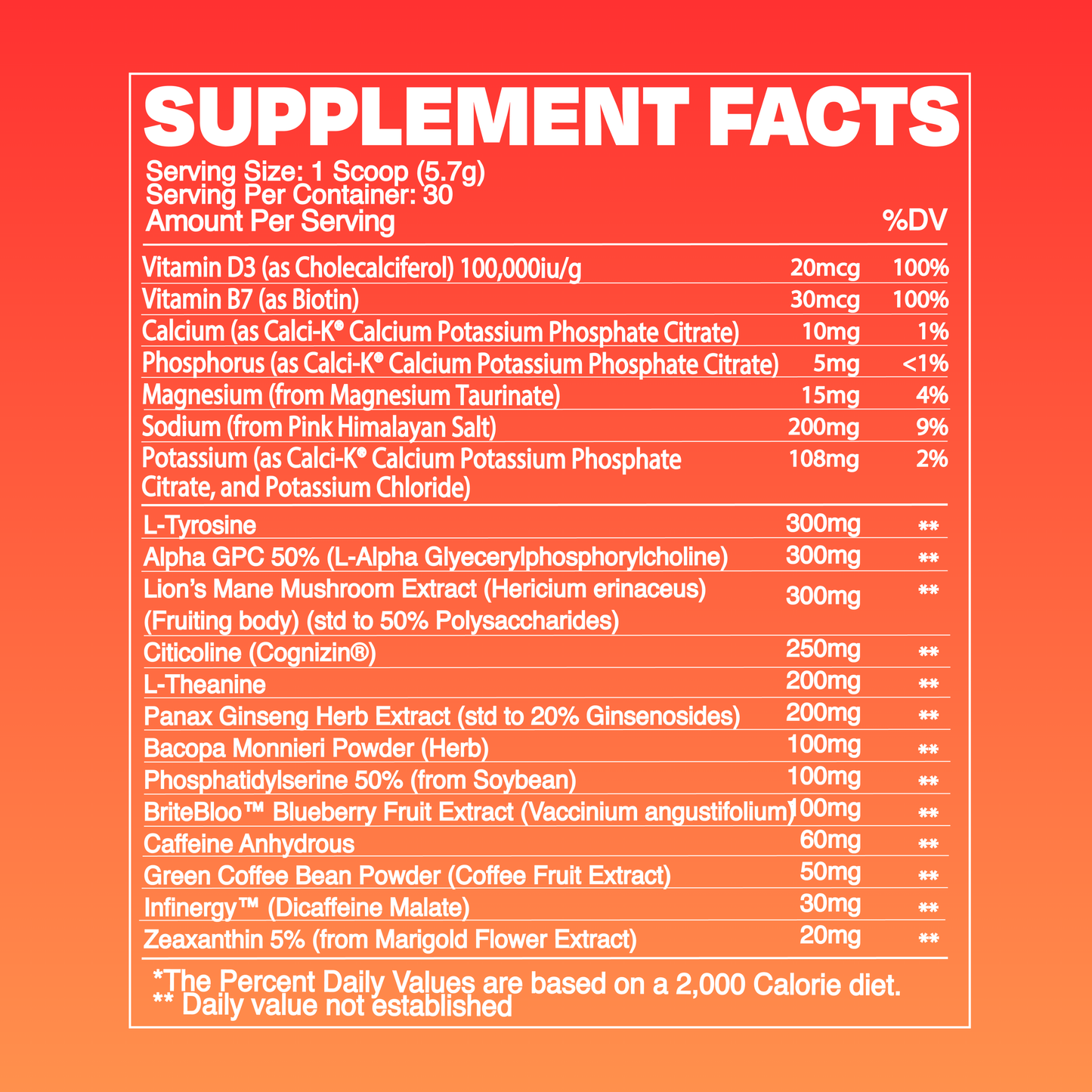 Powered by 12+ premium ingredients like Cognizin®, Lion’s Mane, and Bacopa,
